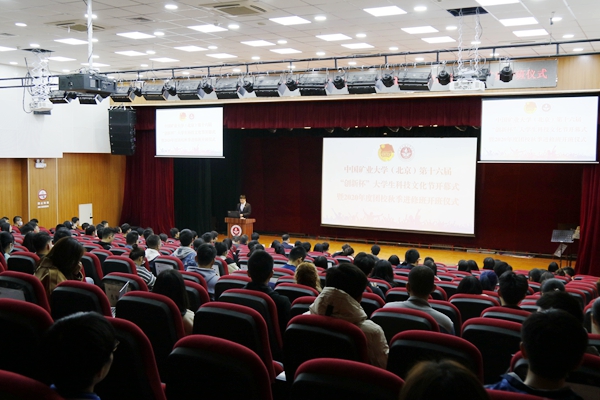 本网讯 10月27日下午,中国矿业大学(北京)第十六届“创新杯”大学生科技文化节开幕式在沙河校区学生活动中心举行。校党委副书记王忠强出席并讲话。校党委学生工作部、校团委负责人,各学院团委负责人、辅导员及学生代表等200余人参加活动。仪式由校团委书记孙铭晗主持。