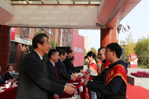 王家臣宣读了经教育部批复的2018-2019学年本科生国家奖学金、国家励志奖学金表彰名单,2019-2020学年董事会奖学金、孙越崎奖学金、金诚信励志奖学金、丰利疫情励志奖学金表彰名单。