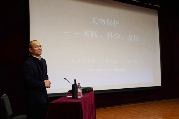 北京大学考古文博学院胡钢副教授应邀为我校师生授课。胡钢是北京大学考古文博学院文物保护教研室主任,中国文物学会文物保护技术与修复材料专业委员副秘书长,文物修复专业委员会委员。主要研究方向为文物保护,讲授“文物分析技术”,“文物材料与保存环境”等课程,主持国家重点研发计划子课题、国家社科基金后期资助、教育人文社科基金、国家文物局等多项科研项目,承担完成国家文物局文物保护修复项目10多项。